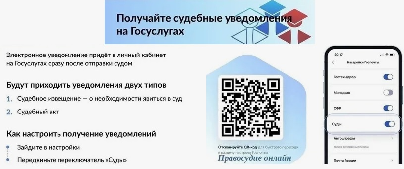 Включение уведомлений от судов на госуслугах